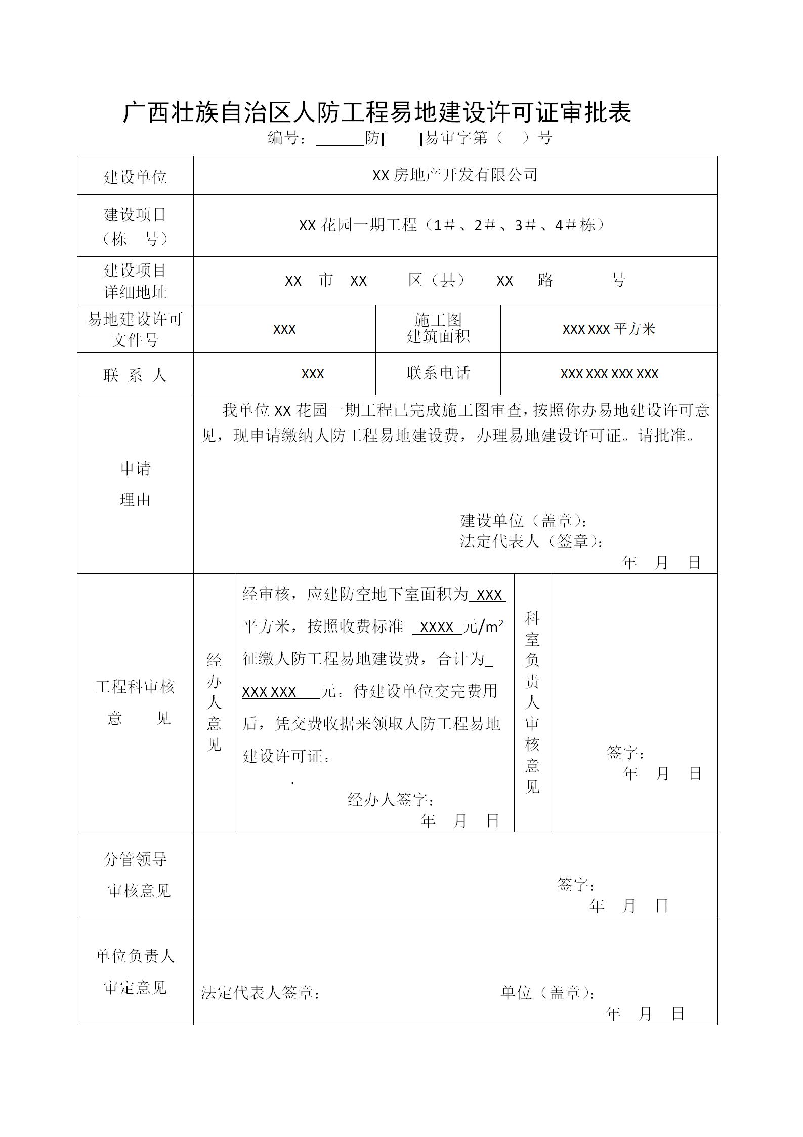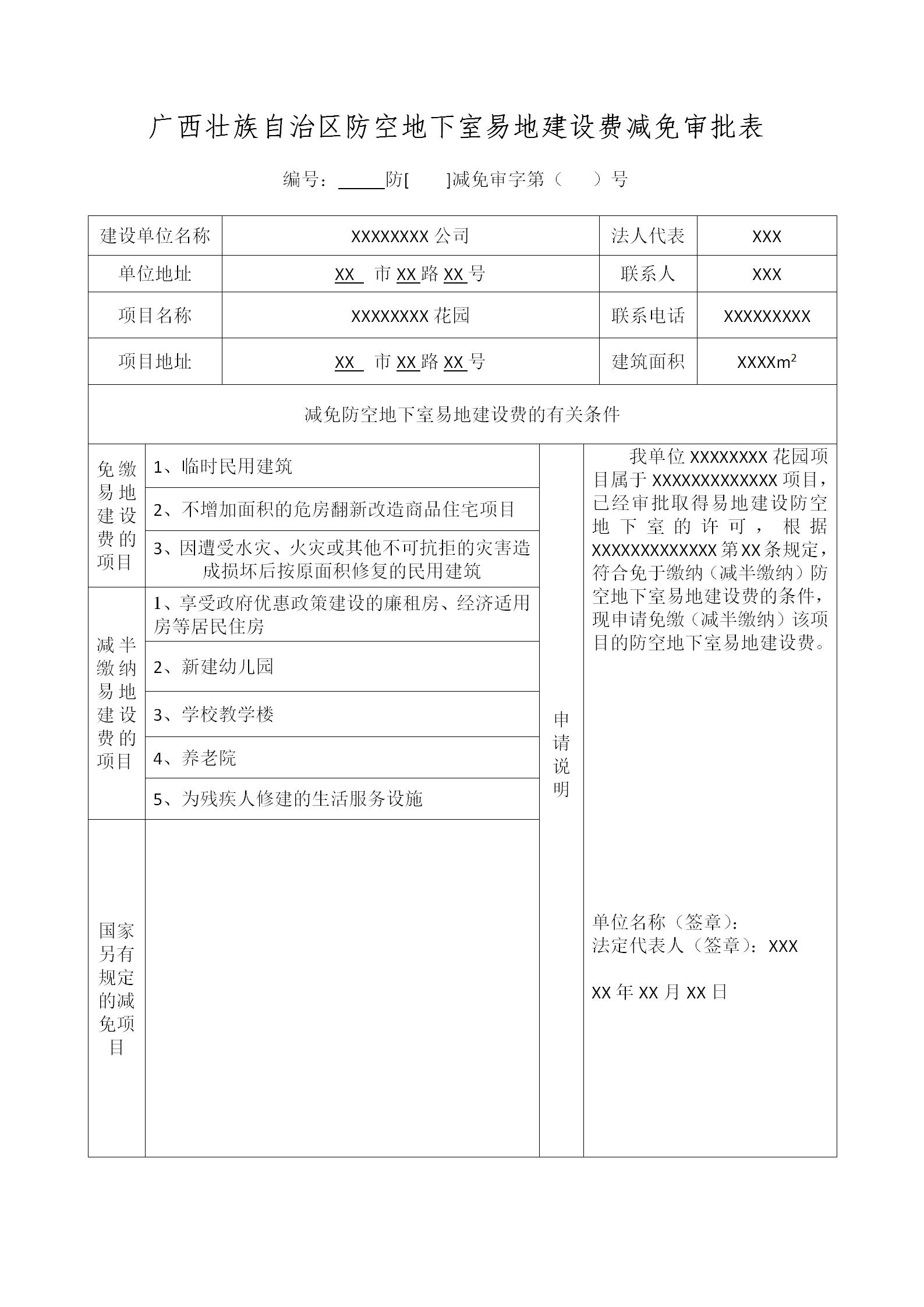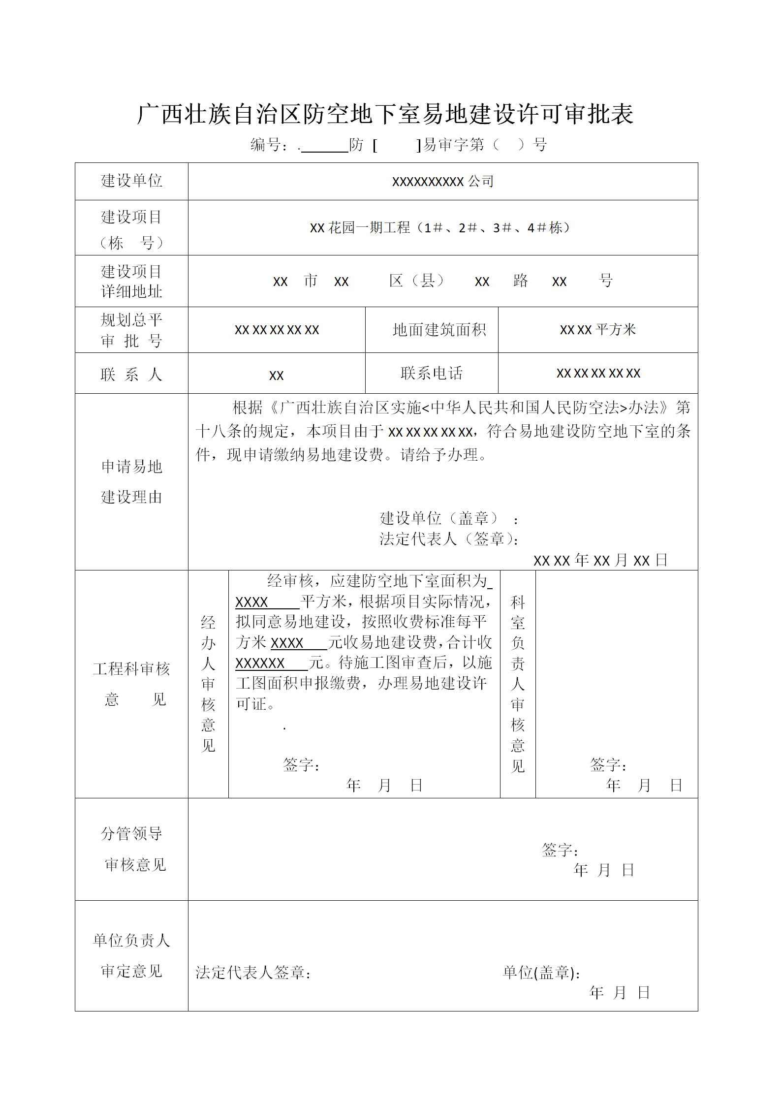 防空地下室易地建设费征收示范文本