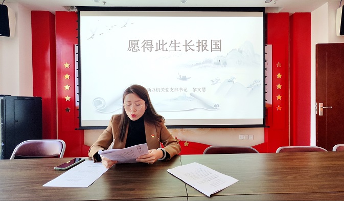 根据主题教育工作安排,12月1日上午,桂林市国动办机关党支部书记黎文慧以《愿得此生长报国》为题,为机关党支部全体党员干部上了一堂主题鲜明、内涵丰富的主题教育专题党课。