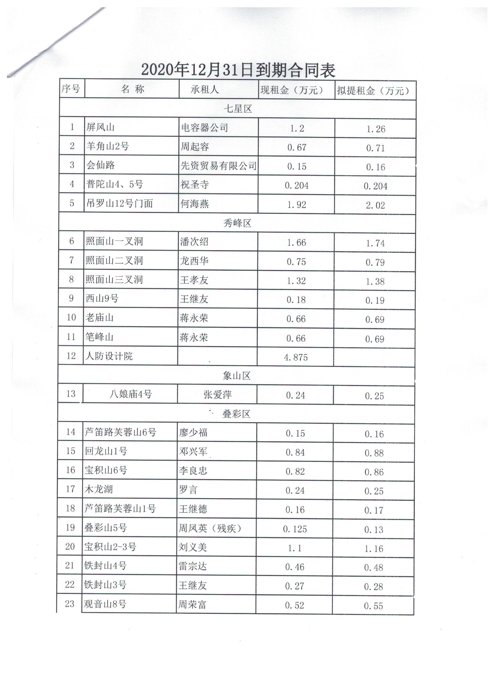 附件:2020年12月31日到期合同表