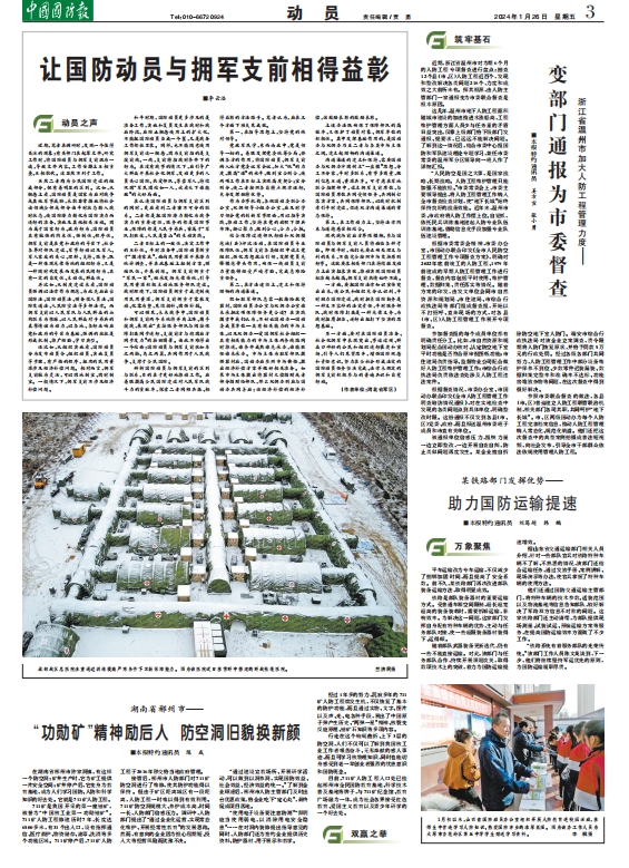 另一方面,要对在国防动员准备、社会化拥军中表现突出、事迹过硬、群众口碑好的公民和组织进行褒奖和宣扬,引导人们见贤思齐,增强国防观念和责任意识,努力在全社会形成法定的国防动员任务坚决完成、法律未规定的拥军支前积极参与的普遍共识和自觉行动。(■李云浩 作者单位:河北省军区)