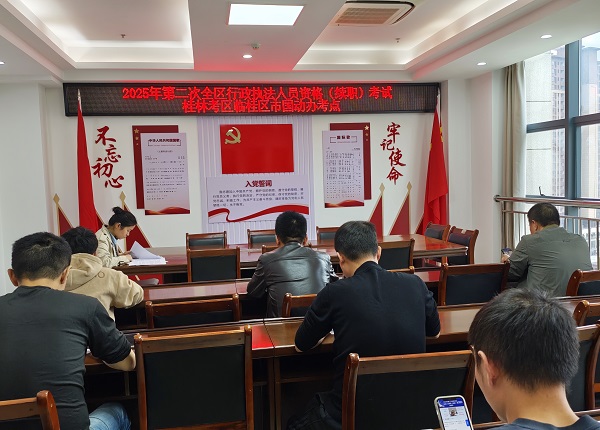为严格落实行政执法人员“持证上岗、亮证执法”制度要求,进一步提升国防动员领域行政执法队伍专业化、规范化水平,11月8日,桂林市国防动员办公室组织相关执法人员参加2025年全区行政执法人员资格考试,以考促学筑牢法治履职根基。