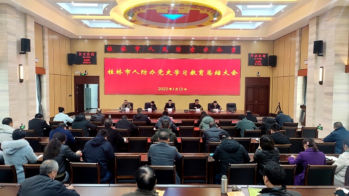 1月13日,桂林市人防办召开党史学习教育总结大会,学习习近平总书记关于党史学习教育总结的重要指示精神和中央、自治区党史学习教育总结会议精神,对人防办党史学习教育情况进行全面总结。市党史学习教育领导小组第四督导组到会指导,办党组书记、主任蒋永刚主持并讲话,全体人防系统党员干部共70余人参加此次会议。